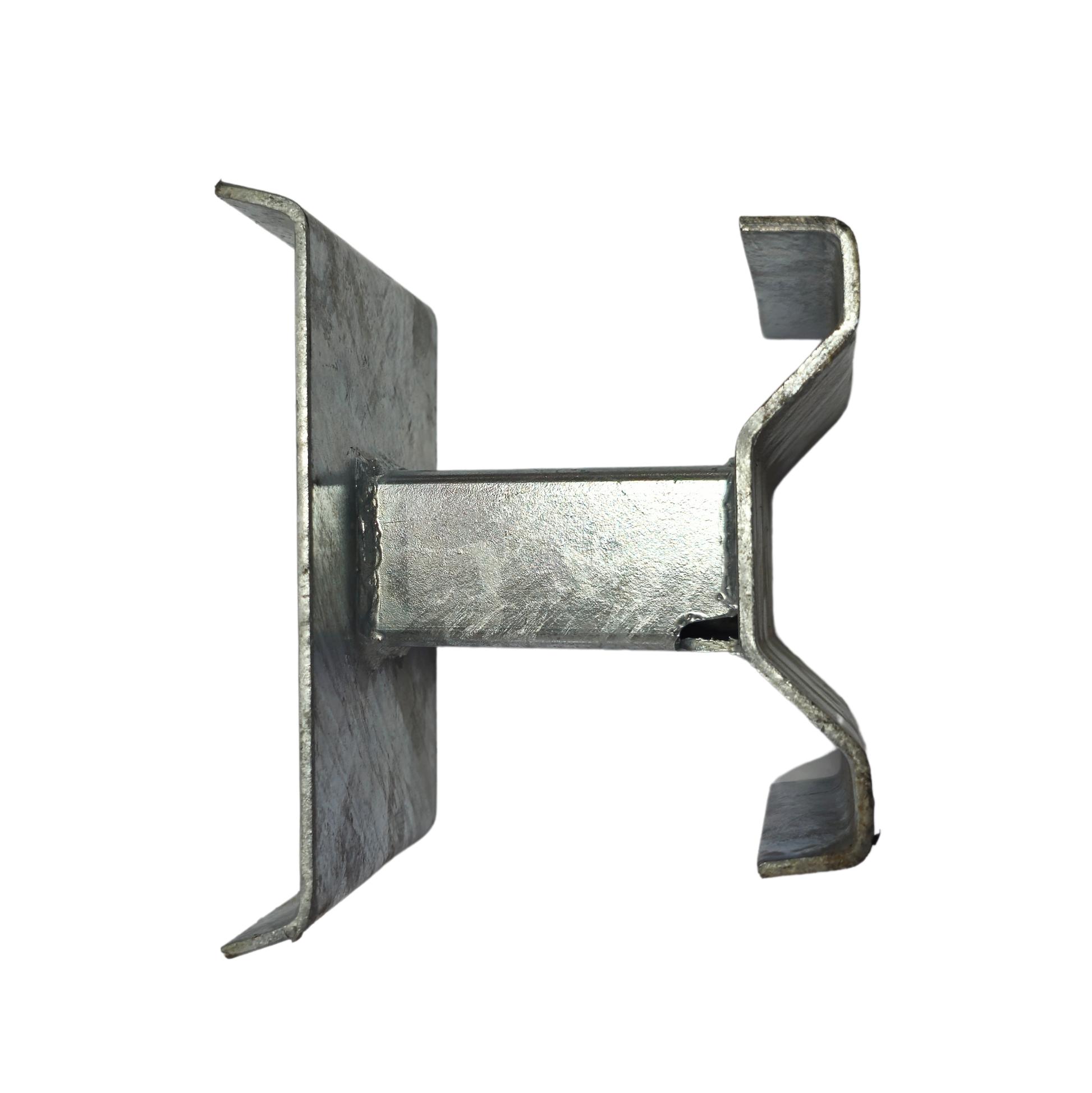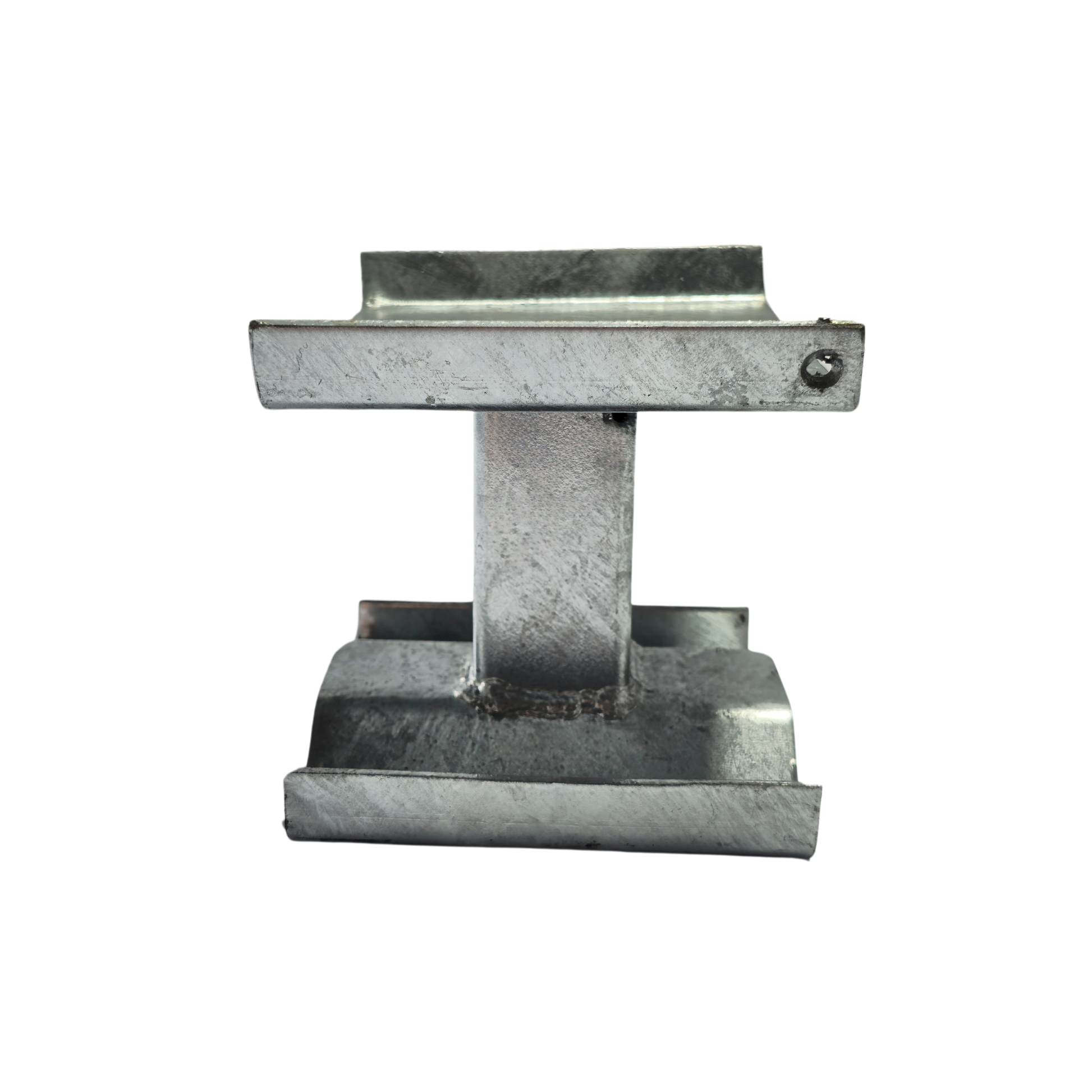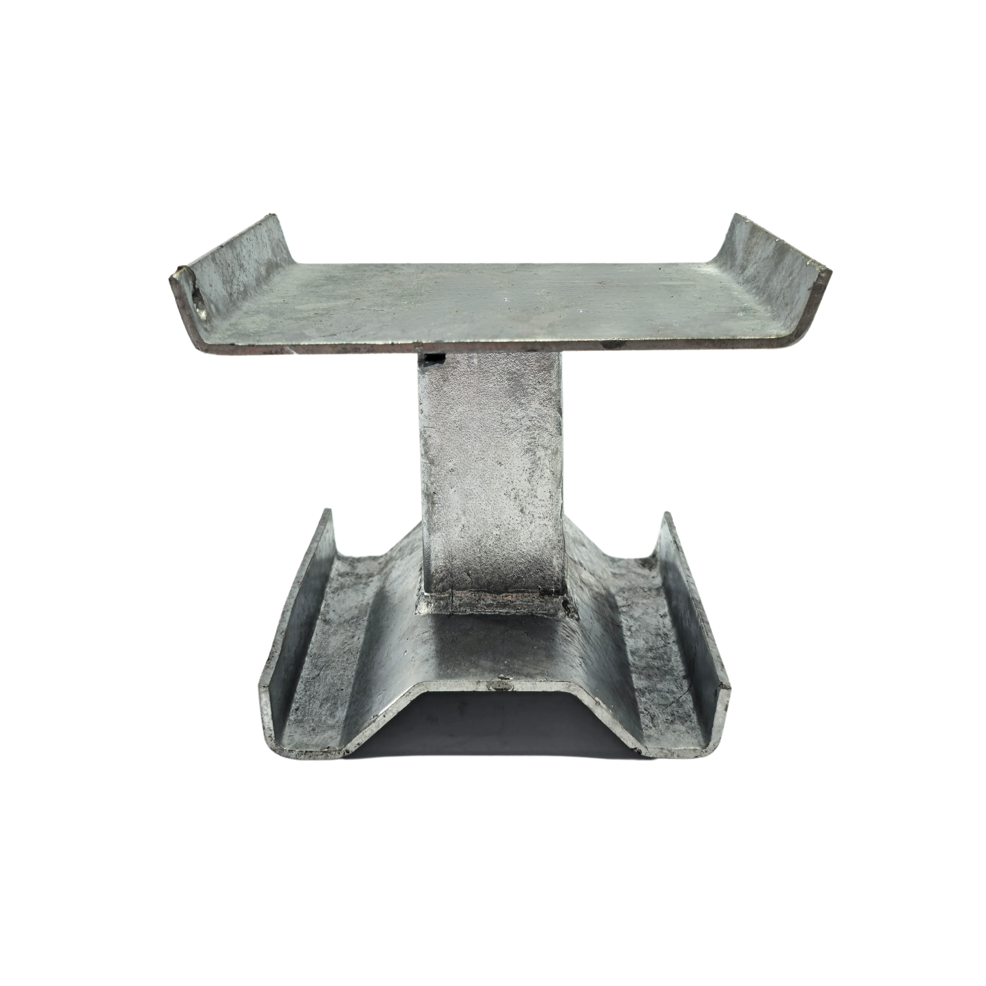 The double tensioning wedge is used when stacking container modules next to each other. It can hold 2 containers at the same time and is therefore an equivalent replacement for 2 individual tensioning wedges. It stabilizes the container and prevents it from "swinging" on the upper floor. It is placed on the long side (in the middle).