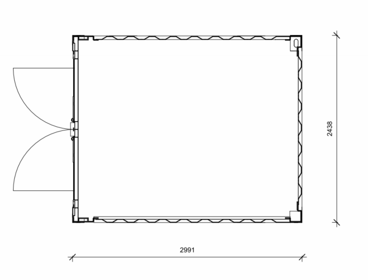 - Zweiflügelige Tür mit spezieller Gummidichtung; Öffnungswinkel ca. 270 Grad