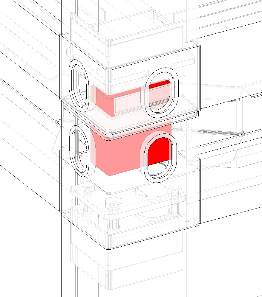 Eckentwässerung: Die Eckentwässerung führt nach dem Prinzip einer Dachrinne Wasser ab. Sie besteht aus Dachrahmen mit Nase sowie Fallrohr DN50 pro Ecksäule. Etwaiges Zubehör (Spannkeile, Stacking Cones) wird speziell hergestellt um die Entwässerung nicht zu verhindern.